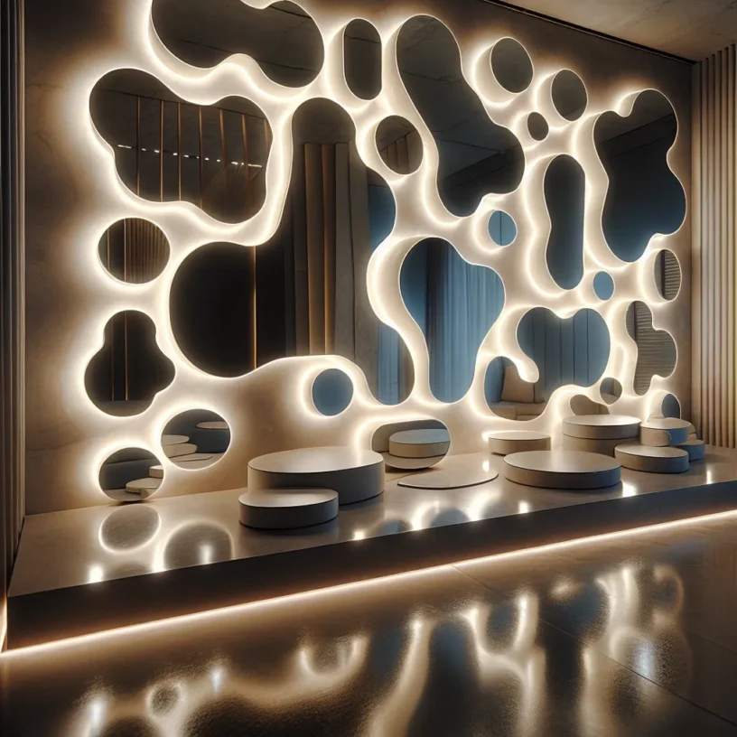 Kreative Raumgestaltung mit unregelmäßigen LED-Spiegeln